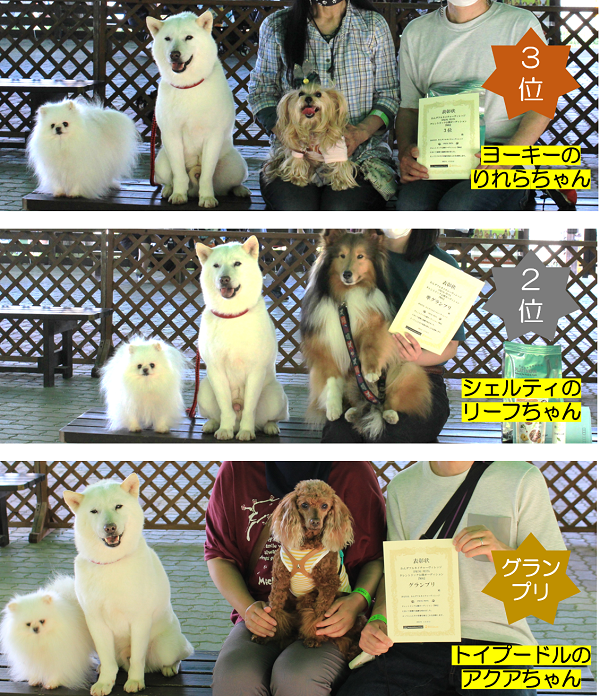 今回グランプリのアクアちゃんには、次回秋のオータムフェスタのモデル犬として活躍していただきます。