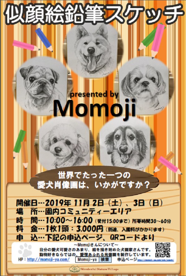 園内コミュニティエリアにて「似顔絵鉛筆スケッチ」を開催してます。
