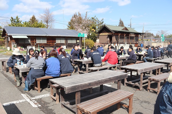 清掃活動終了後は、おにぎりとあきる野市のB級グルメ「だんべぇ汁」でお腹をみたしました。